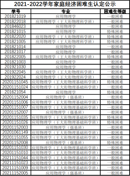 新葡的京集团350vip8888首页2021-2022学年家庭经济困难生认定结果公示