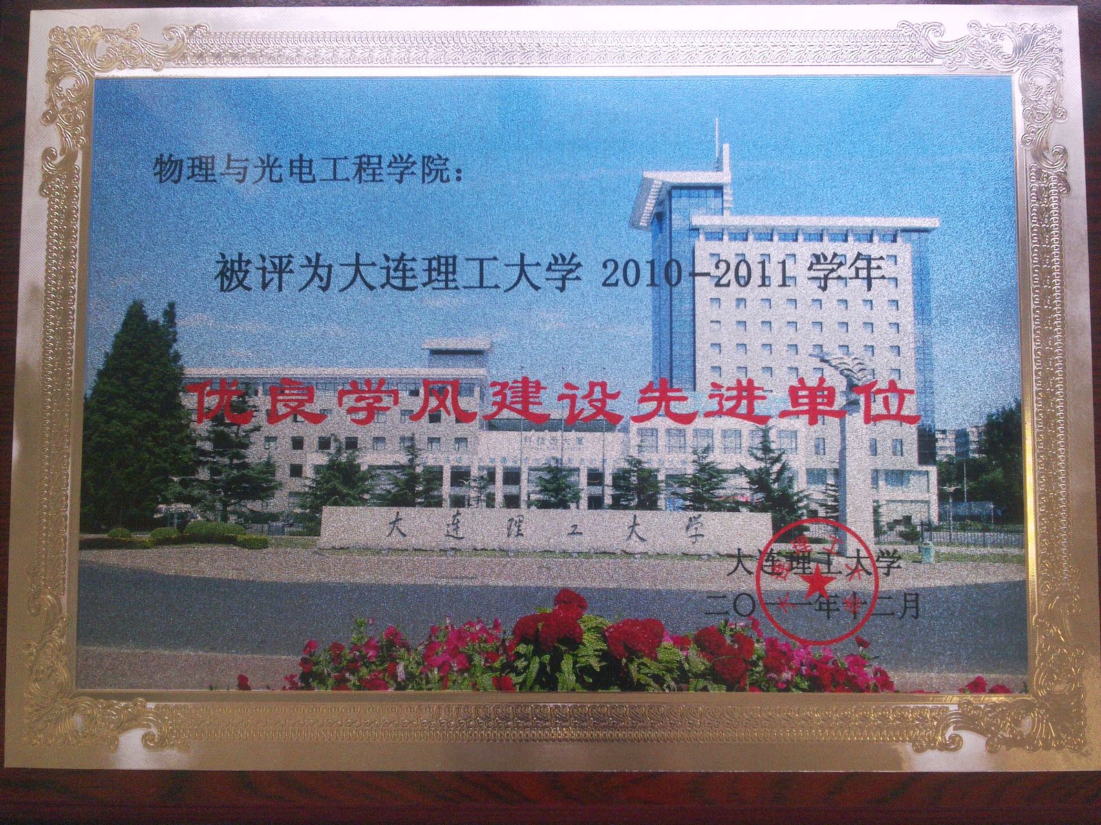 2011年12月,物理与光电工程学院荣获新葡的京集团350vip8888首页2010-2011“学年优良学风建设先进单位”荣誉称号,于近9年中第8次获此殊荣。